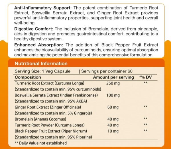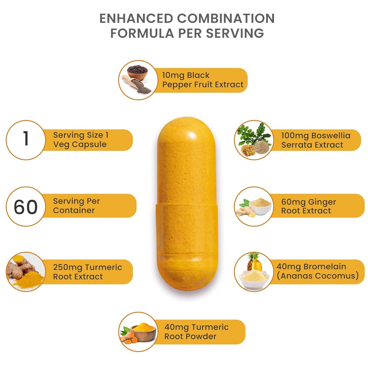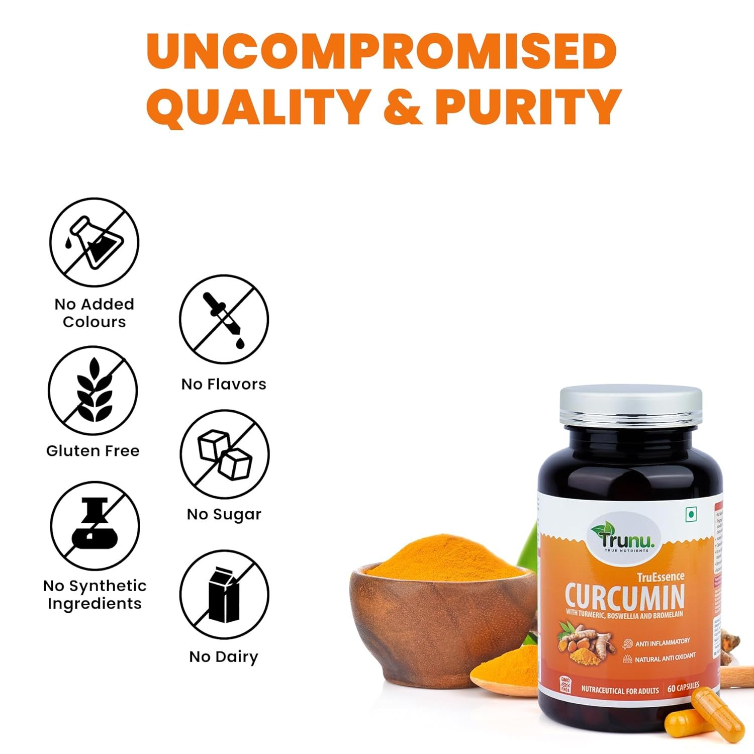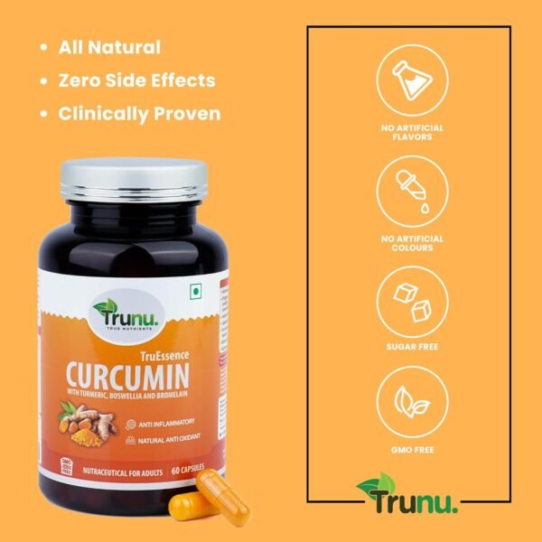 - Advanced Formulation : Trunu curcumin supplement contains turmeric, Boswellia & bromelain for maximum effectiveness, comes in a pack of 60 vegetarian capsules, providing a 30-day supply of this powerful herbal supplement.